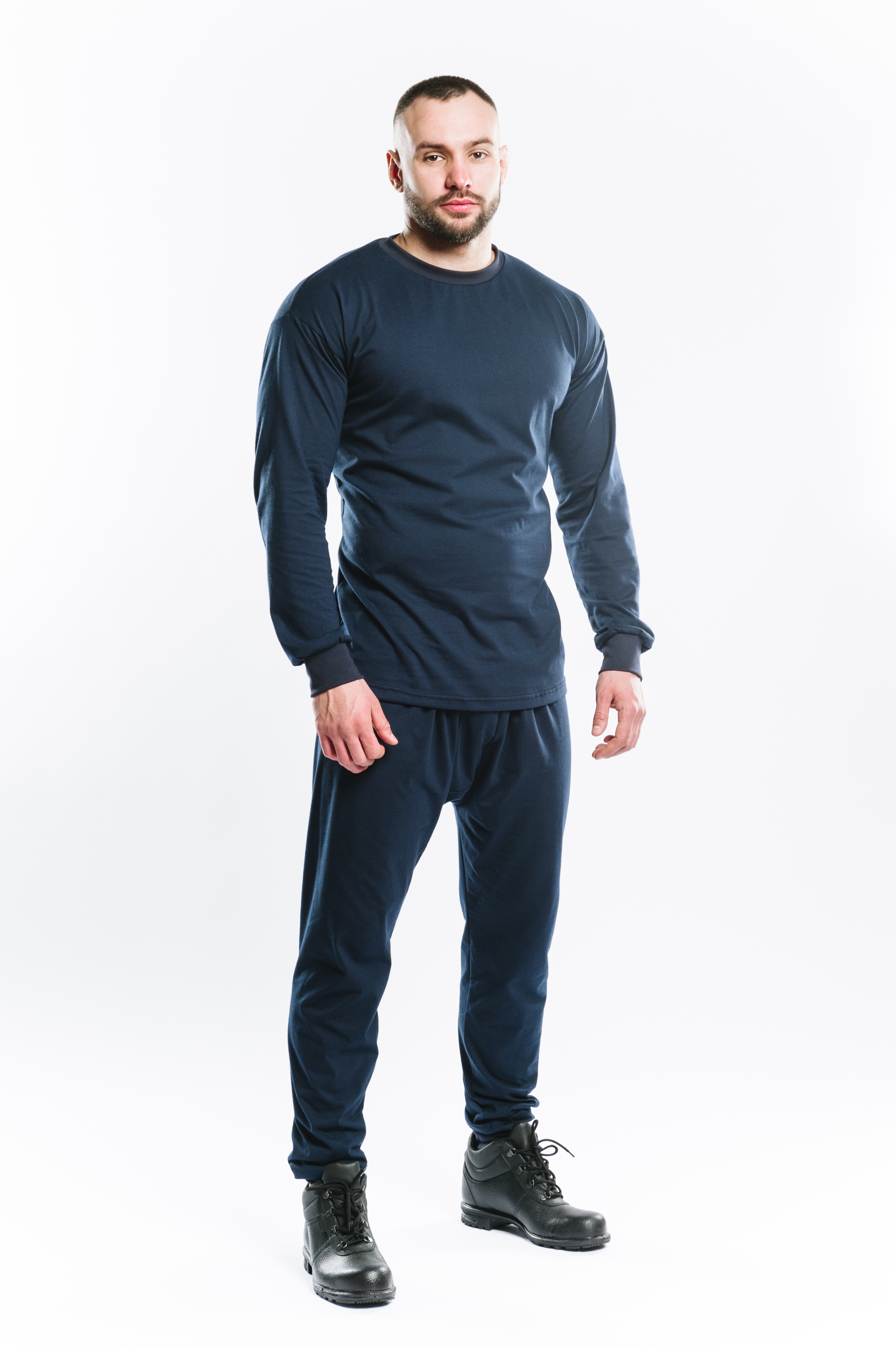 Рекомендована для усиления защитных свойств костюма. Уровень защиты: с уровнем защиты до 5 кал/см2. Белье состоит из фуфайки и брюк. Фуфайка прямого силуэта, с длинными втачными рукавами. Полочка и спинка целые. Рукава одношовные с притачными манжетами. Горловина фуфайки обработана обтачкой. Брюки состоят из двух половинок без боковых швов, по низу притачные манжеты.