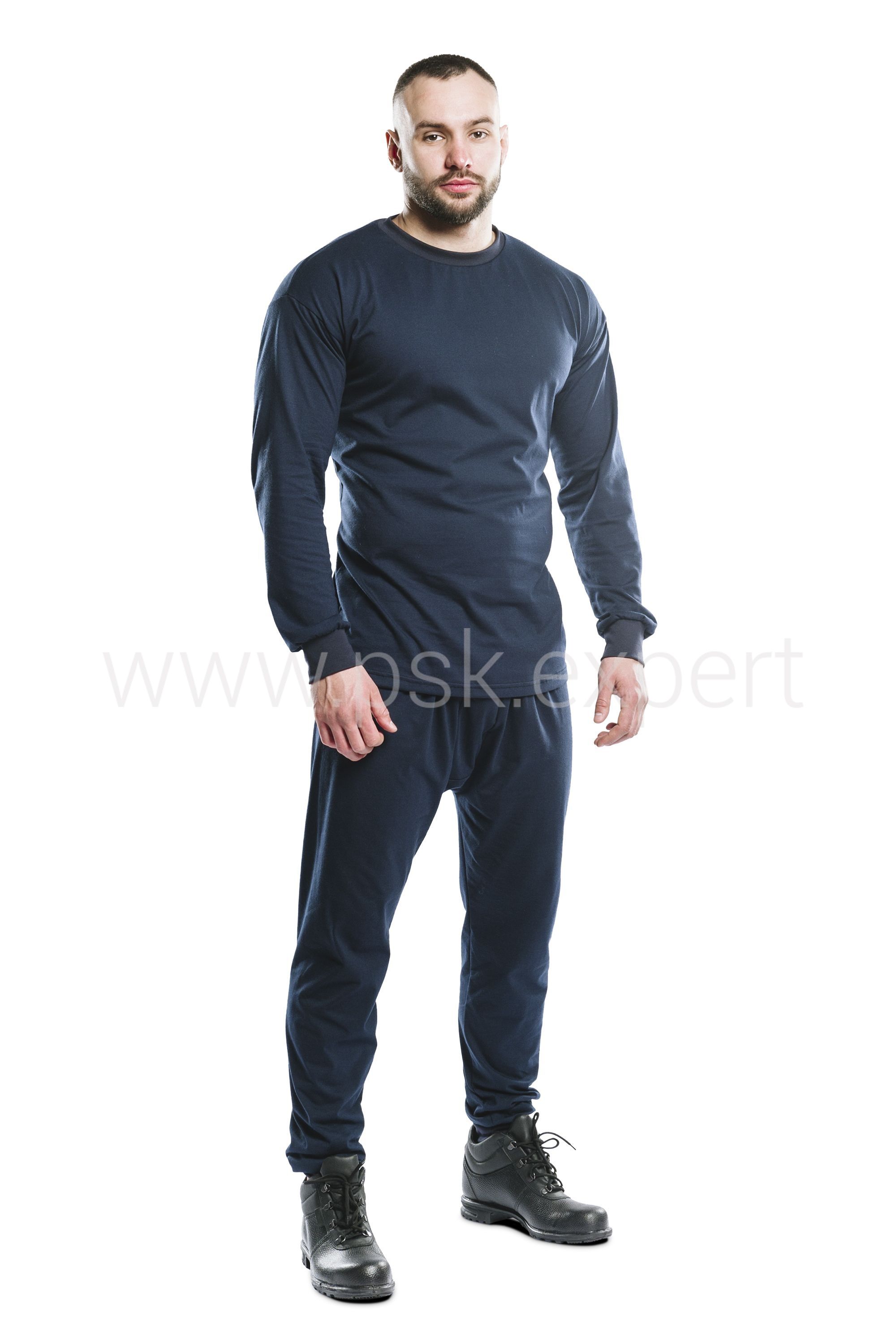 Комплект белья состоит из фуфайки и брюк. Фуфайка прямого силуэта, с длинными втачными рукавами. Полочка и спинка целые. Рукава одношовные с притачными манжетами. Горловина фуфайки обработана обтачкой. Брюки состоят из двух половинок без боковых швов, по низу притачные манжеты. Белье изготовлено из термостойкого трикотажного полота с запатентованной огнестойкой технологией.Рекомендовано для усиления защитных свойств защитного костюма от электродуги.