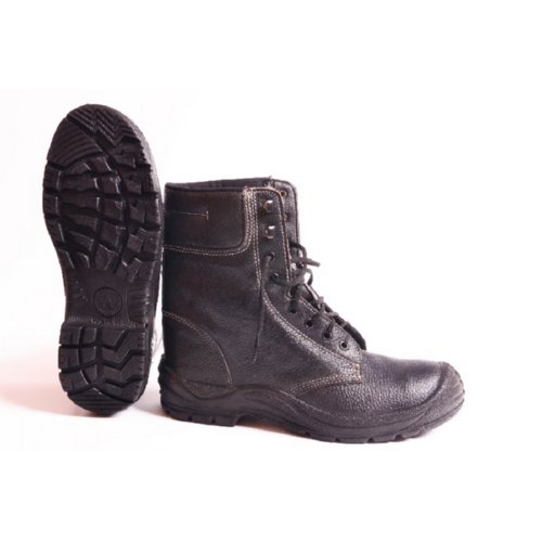 Ботинки с высоким берцем изготавливаются с полуглухим клапаном, который защищает ногу от тугой шнуровки, а также препятствует попаданию внутрь обуви мелких камней, пыли и воды. Верх обуви - натуральная кожа. Высота ботинка – 24см. Мягкий кант.