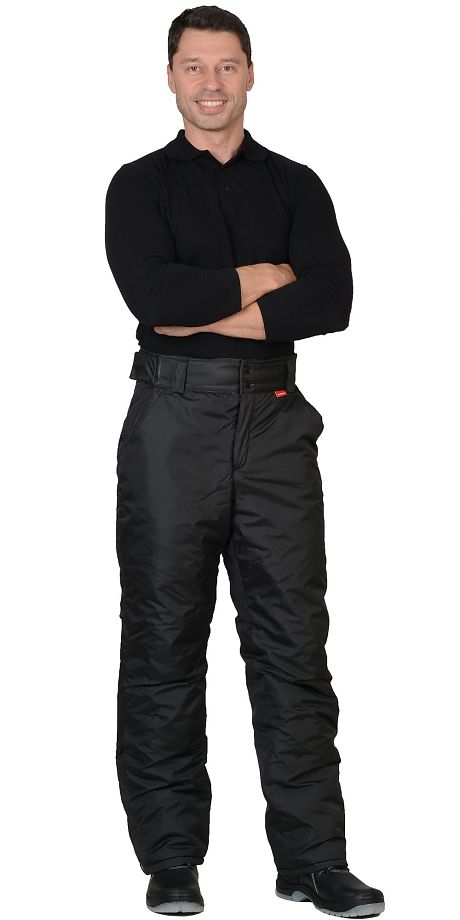 Тк. "DEWSPO PU VISIBLI" 100% п/э, пл. 85 г/кв.м, 100% п/э.Утеплитель: "Термофил" 150 г/кв.м. Брюки прямые, с притачной утеплённой подкладкой, с застежкой спереди на молнию, с расширенным утеплённым поясом с удобной регулировкой по ширине, с боковыми внутренними карманами спереди и с двумя накладными карманами с клапанами сзади. Внизу боковых швов брюк разрез с молнией и напульсник из подкладочной ткани с эластичной тесьмой.