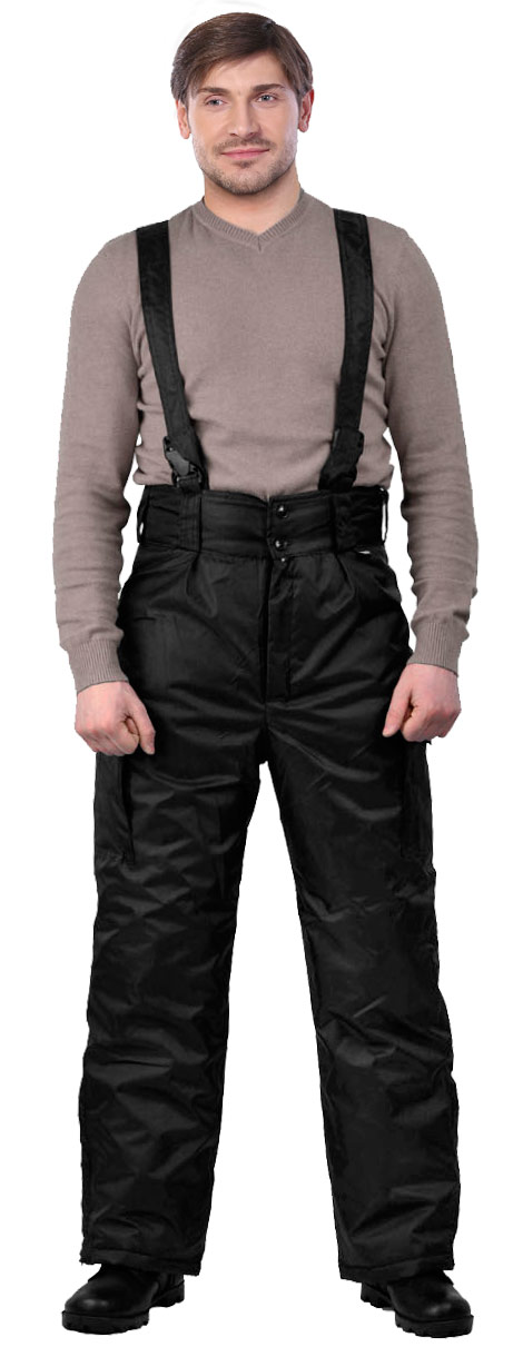 • Брюки на поясе со шлевками под широкий ремень и регулируемыми по длинне бретелями.