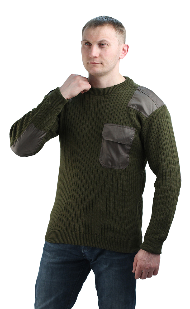 Джемпер-свитер с усилительными накладками в области плеч и локтей, а так же накладной карман и погоны из водоотталкивающей ткани.