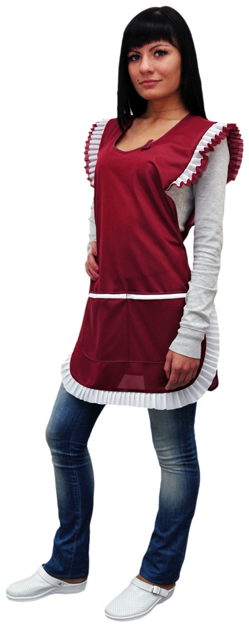 Фартук-сарафан с завязками по линии талии, с одним большим накладным карманом, разделенный строчкой на отделения. Рекомендуется для работников торговли, сферы обслуживания, технического персонала гостиниц. Размер: Универсальный