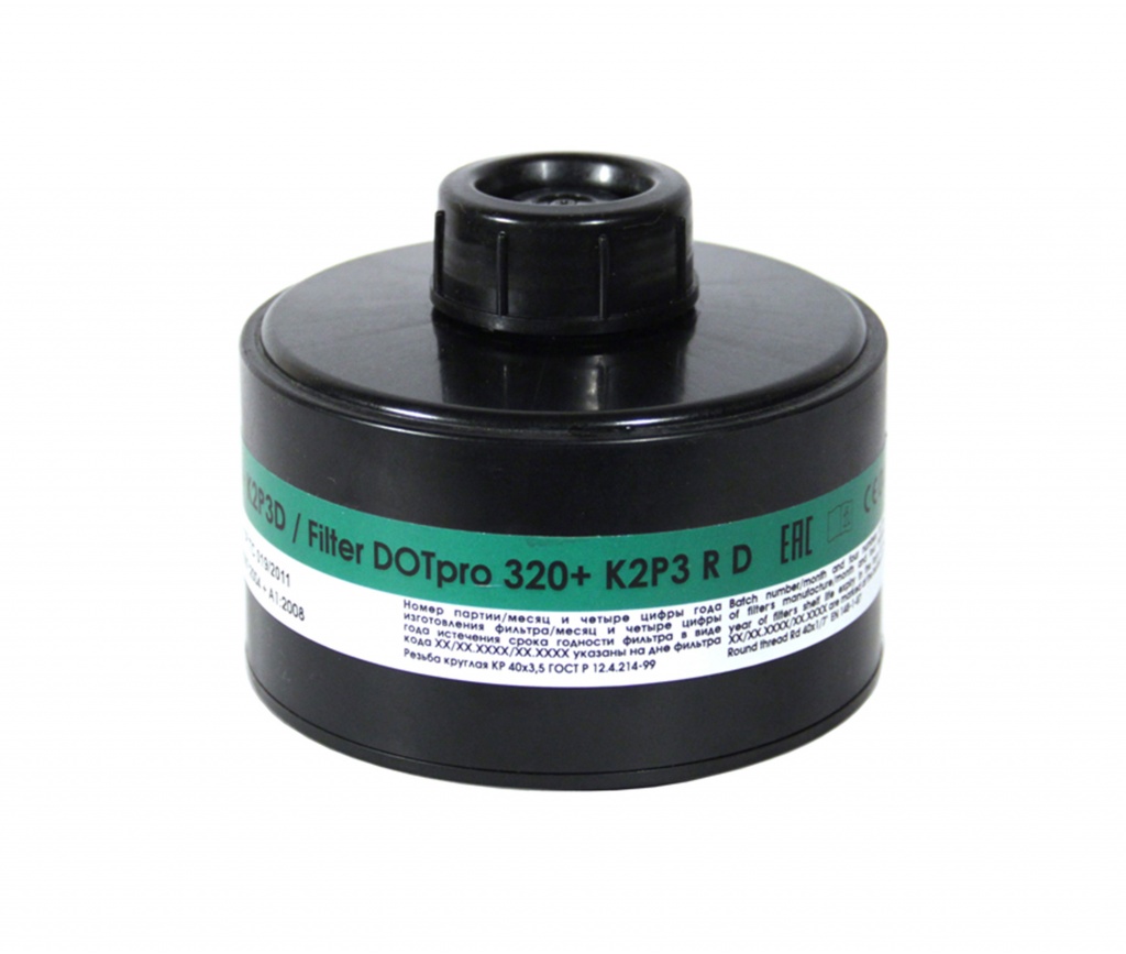 Защита от органических паров с температурой кипения выше 650С, неорганических и кислых газов и паров, аммиака и его органических производных, аэрозолей. Применяется в комплекте противогаза промышленного фильтрующего "РУБЕЖ".
