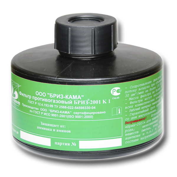 Противогазовый фильтр К1 предназначен для очистки загрязнённого воздуха от аммиака и паров аминов.