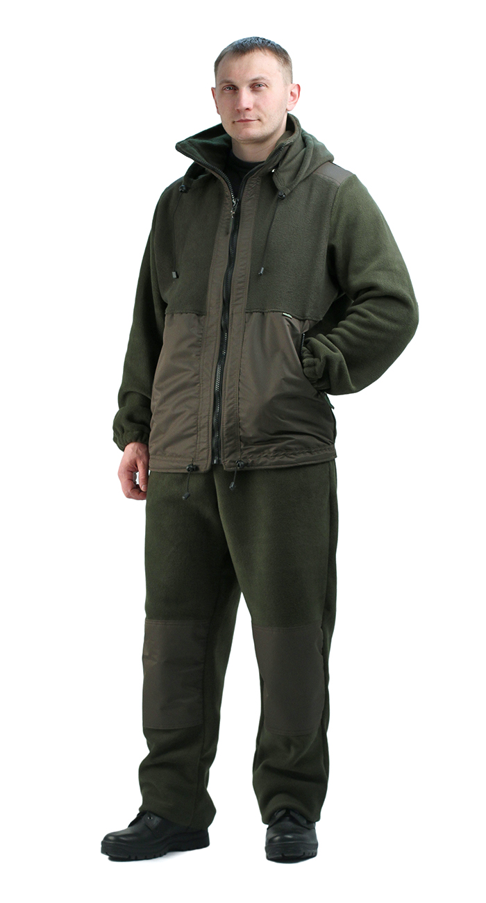 Флисовый костюм "Панда" тёмный хаки с накладками, 350 г/кв.м