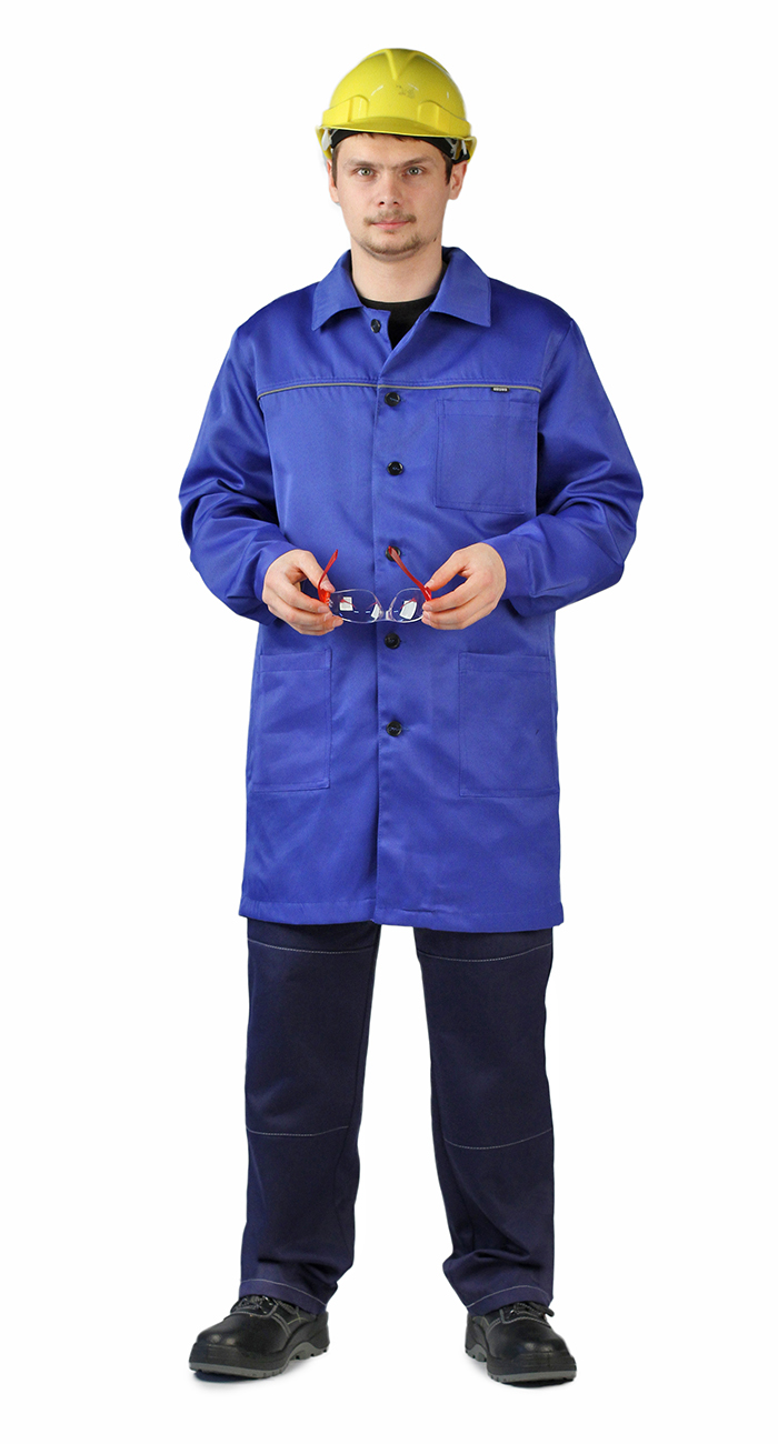 • Халат с центральной застежкой на пуговицы, длинными рукавами с манжетами, на спинке шлица.