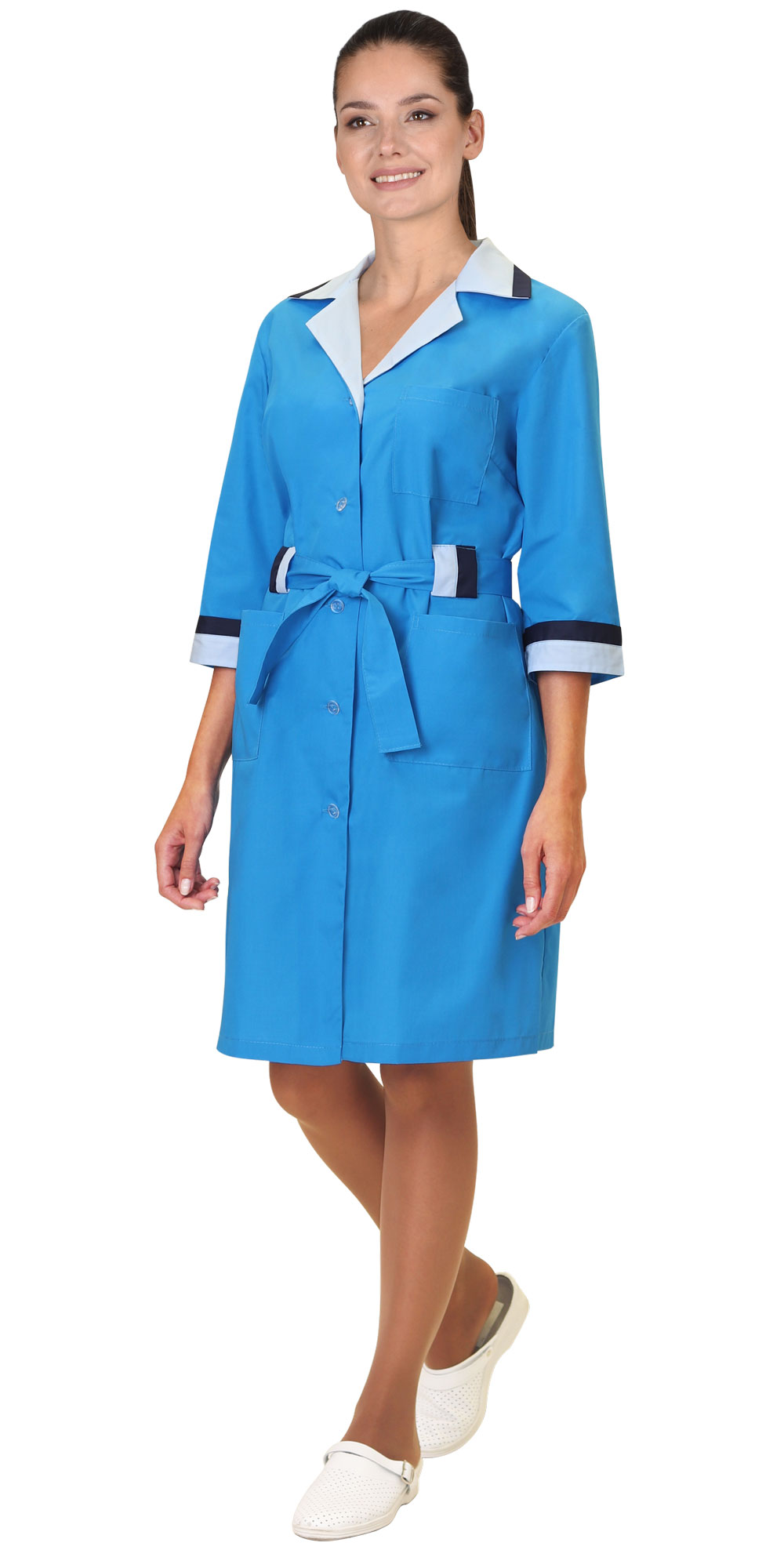 Халат СИРИУС - ФЛОРА женский со светло-голубым воротником.