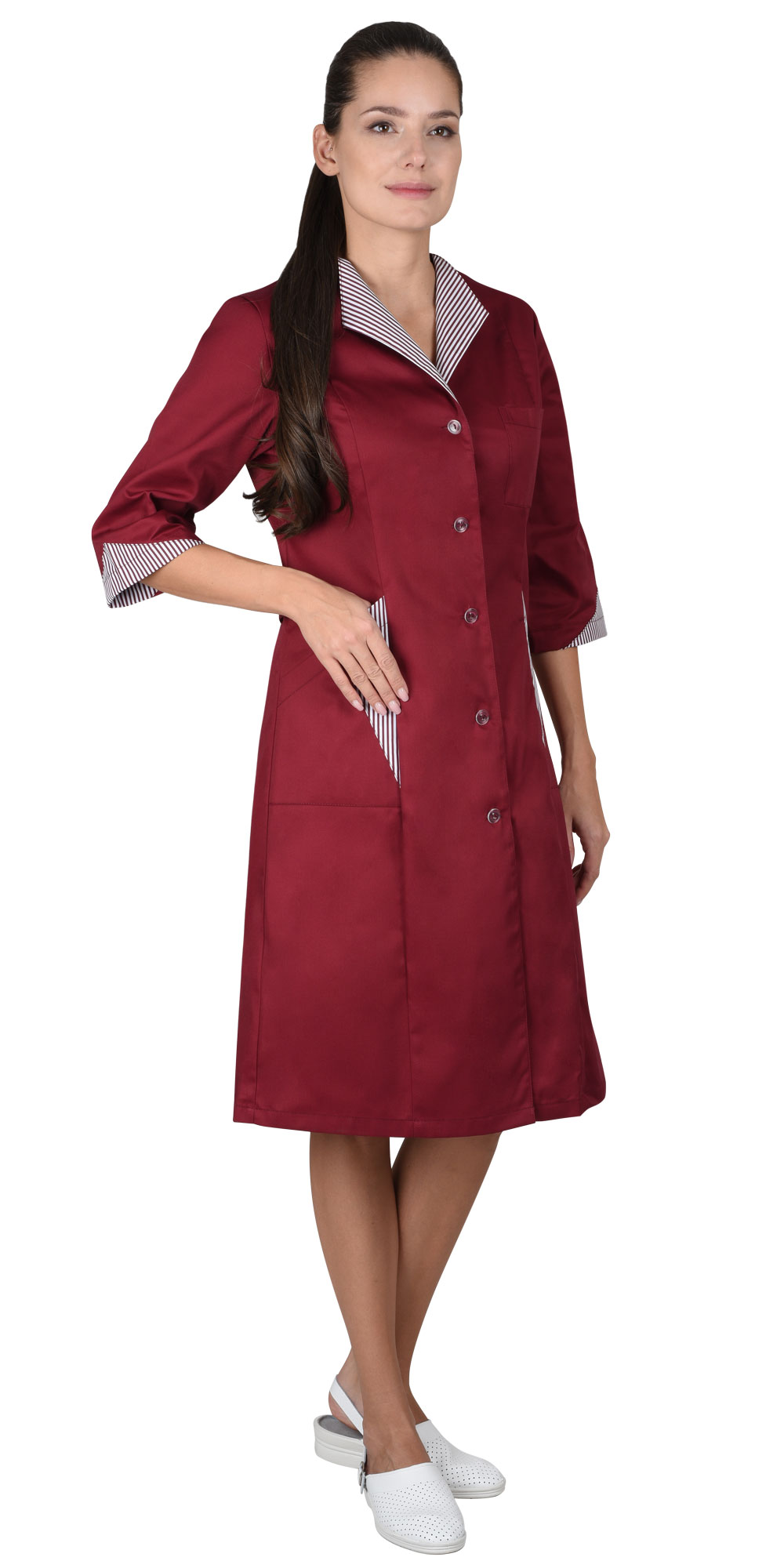 Халат СИРИУС - МАРЛЕН - 2 женский бордовый с полоской.