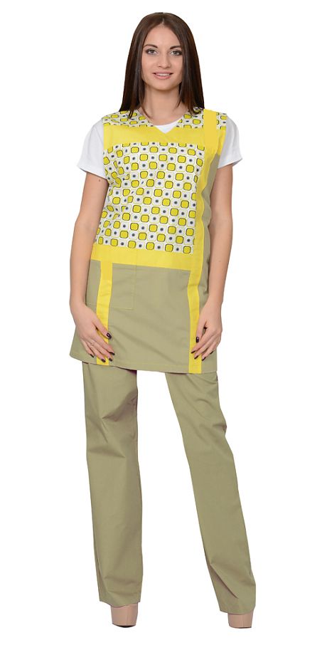 Комплект "СИРИУС-ГАЛАТЕЯ" женский: фартук, брюки оливковый с желтым