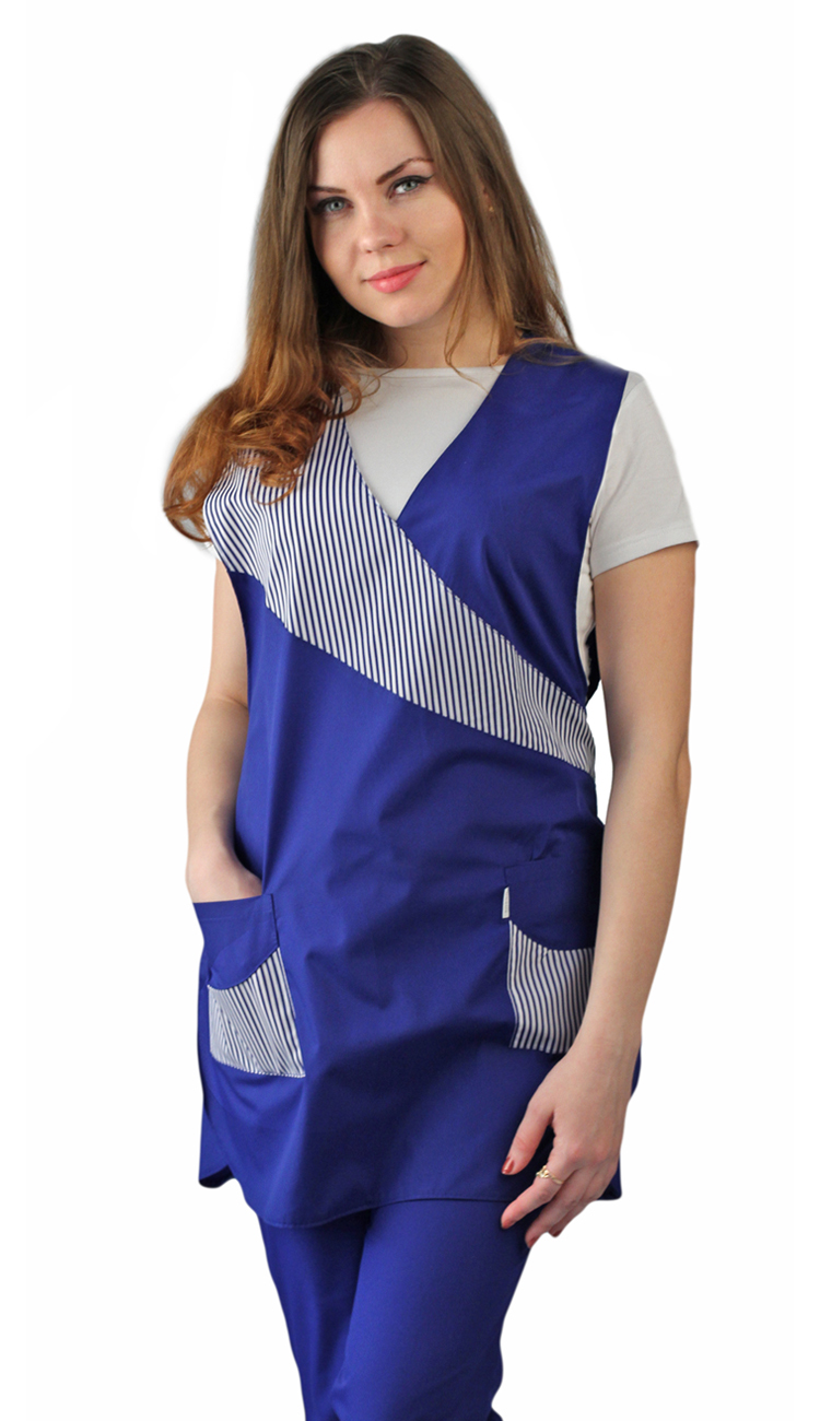 Комплект состоит из фартука-сарафана и брюк. Фартук регулируется по линии талии с помощью полупоясов. Карманы накладные. Брюки на резинке.