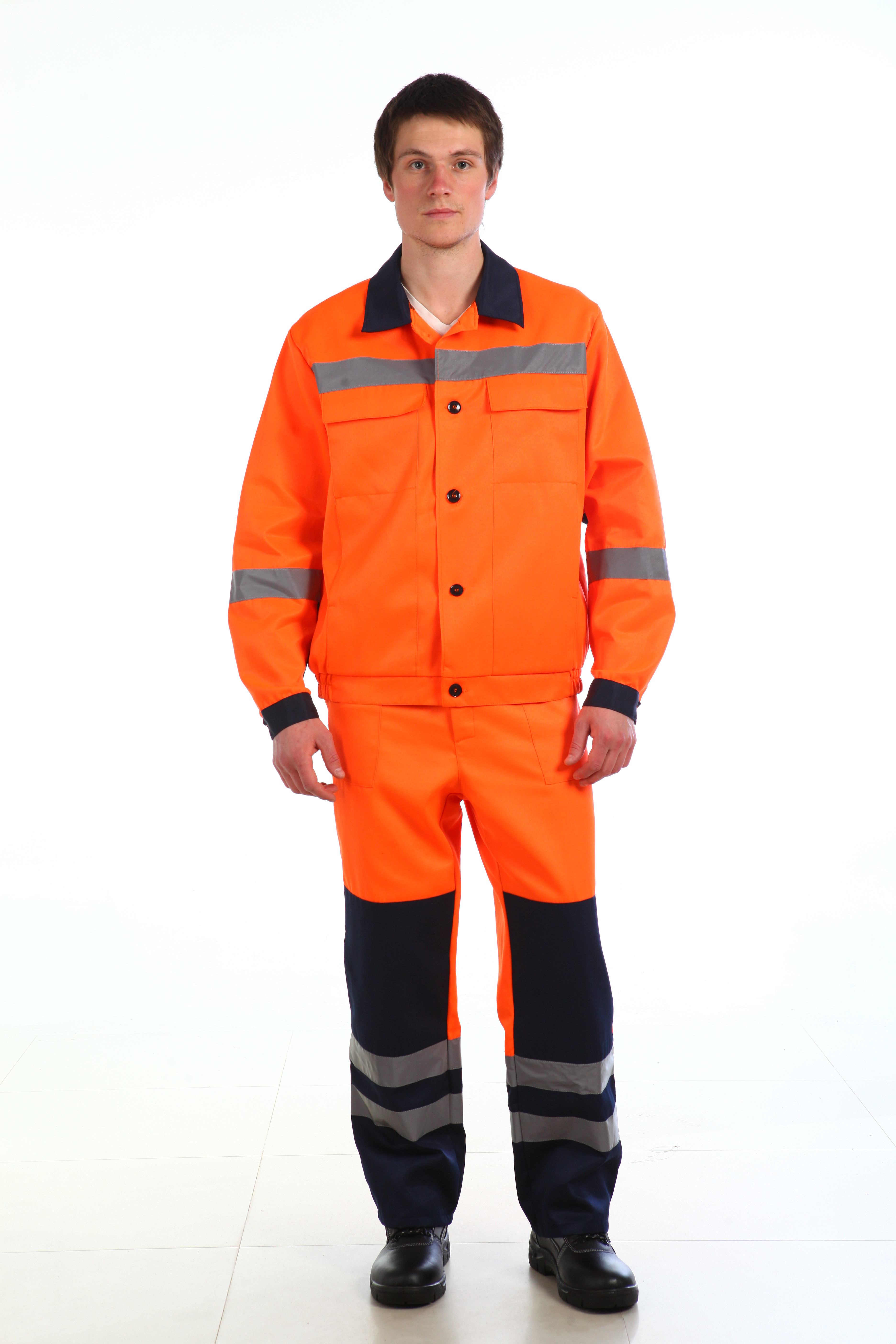 Костюм дорожника летний «МАГИСТРАЛЬ» с СОП Цвет: оранжевый с тёмно-синим.