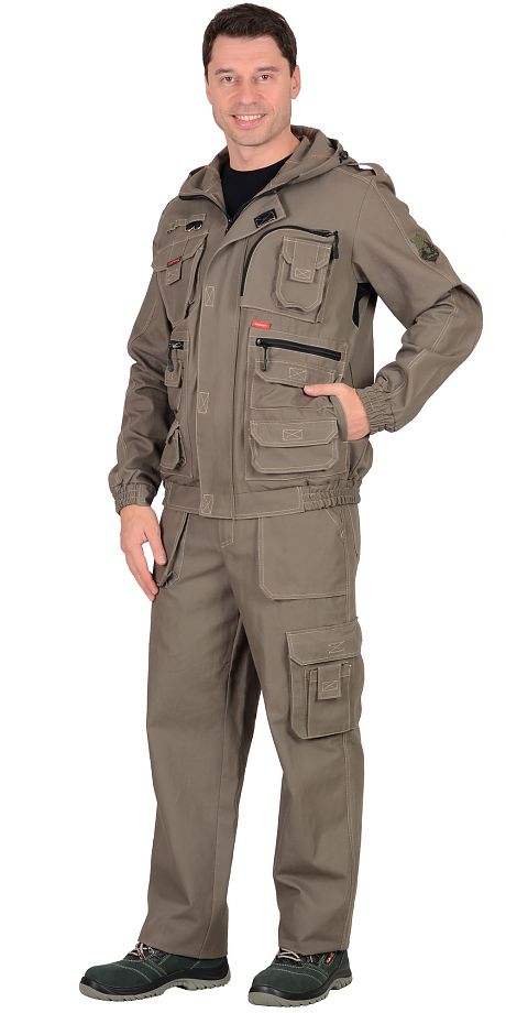 Костюм "Канвас" летний: куртка, брюки.Куртка прямого силуэта, с центральной застежкой на молнию с ветрозащитным клапаном, притачным капюшоном, притачным поясом частично стянутым на резинке. Куртка имеет множество объемных накладных карманов, карманы на молнии, притачные манжеты на резинке, налокотники, погоны и вентиляционные вставки.Брюки прямого силуэта с застежкой гульфика на "молнию", с широким поясом, частично стянутым на резинку и накладными объемными карманами.Ткань: "Сanvas", состав: 100% х/б. пл. 260 г/м2.ГОСТ 12.4.280-2014