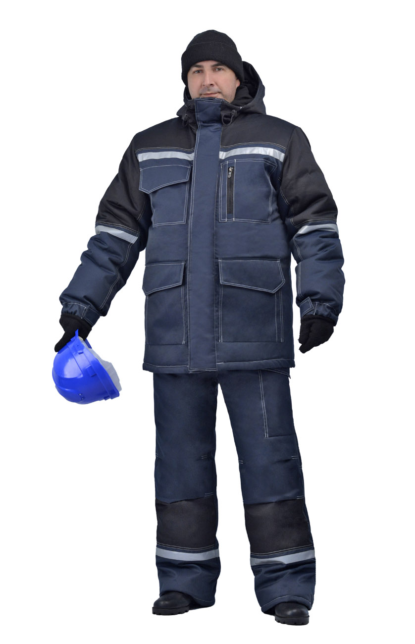 Костюм мужской Инженер (Термофайбер) зимний т-синий с черным (Амулет)