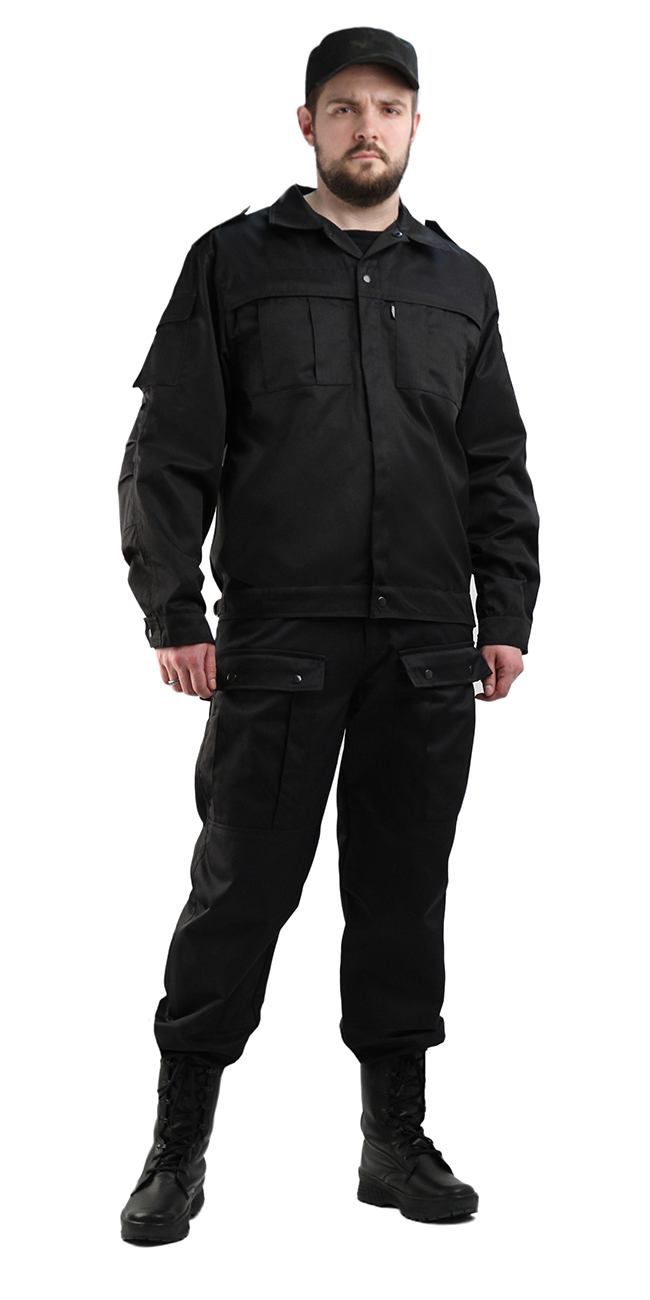 Брюки под широкий ремень, гульфик на молнию и кнопки, верхние боковые карманы, накладные объёмные карманы с клапаном на кнопки, усилительные накладки в области колен, на задней половинке фигурный накладной карман с фигурным клапаном, под клапаном патронташ, низ брюк под резинку, имеется пуфта со штрипкой.