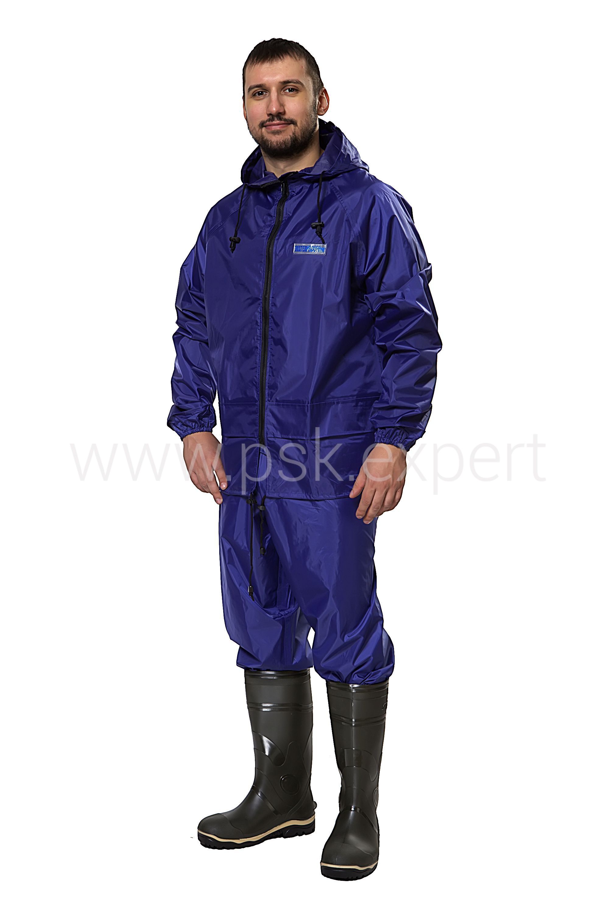 Костюм состоит из куртки и брюк. Куртка с капюшоном, центральной застежкой на молнию и внутренней ветрозащитной планкой, двумя накладными карманами с клапанами, с манжетами на рукавах из эластичной тесьмы. Для создания воздухообмена во время работы, в куртке имеются вентиляционные отверстия на спине и на уровне подмышечных впадин. Объем капюшона и нижняя часть куртки регулируется при помощи шнура. Брюки прямого свободного покроя с поясом из эластичной тесьмы, который фиксирует объем по талии. Изделие выполнено из синтетического водоупорного материала: 100% полиэфир с внутренним ПВХ покрытием. Все швы изделия проклеены изнутри и герметичны. Ткань экологична и соответствует европейскому стандарту по содержанию вредных веществ EN 71 PART3. Рекомендуется для рыболовецких хозяйств, портовых рабочих, работников автомоек и муниципальных служб.