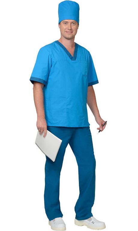 Костюм СИРИУС-РЕАЛ мужской: куртка, брюки, колпак светло-синий с бирюзовым
