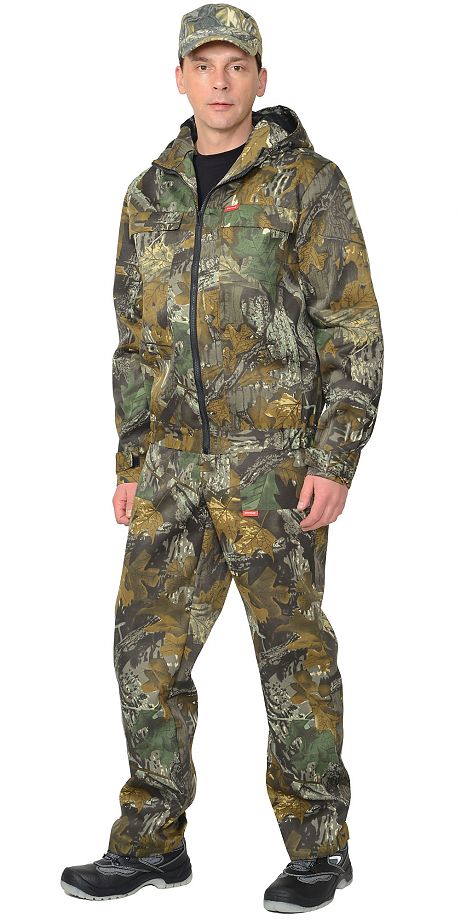 Куртка прямого силуэта, с застежкой на молнию, с притачным поясом, с втачным капюшоном с противомоскитной сеткой. Полукомбинезон с центальной застёжкой на молнию, с двумя накладными карманами с клапаноми и с боковыми накладными карманами с наклонным входом. Ширина по спинке регулируется при помощи зластичной тесьмы..Ткань: «CROWN-230» смесовая с ВО пропиткой: 80% п/э, 20 % х/б, пл. 230 г/м.ТУ 8550-01-81391241-2008