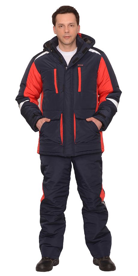 Костюм СИРИУС-СТРОЙГРАД зимний: куртка длинная., брюки темно синий с васильковым и СОП