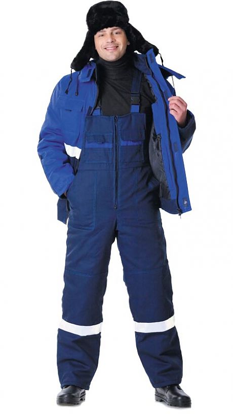 Костюм СИРИУС-СТРОЙГРАД зимний: куртка длинная., брюки темно синий с васильковым и СОП