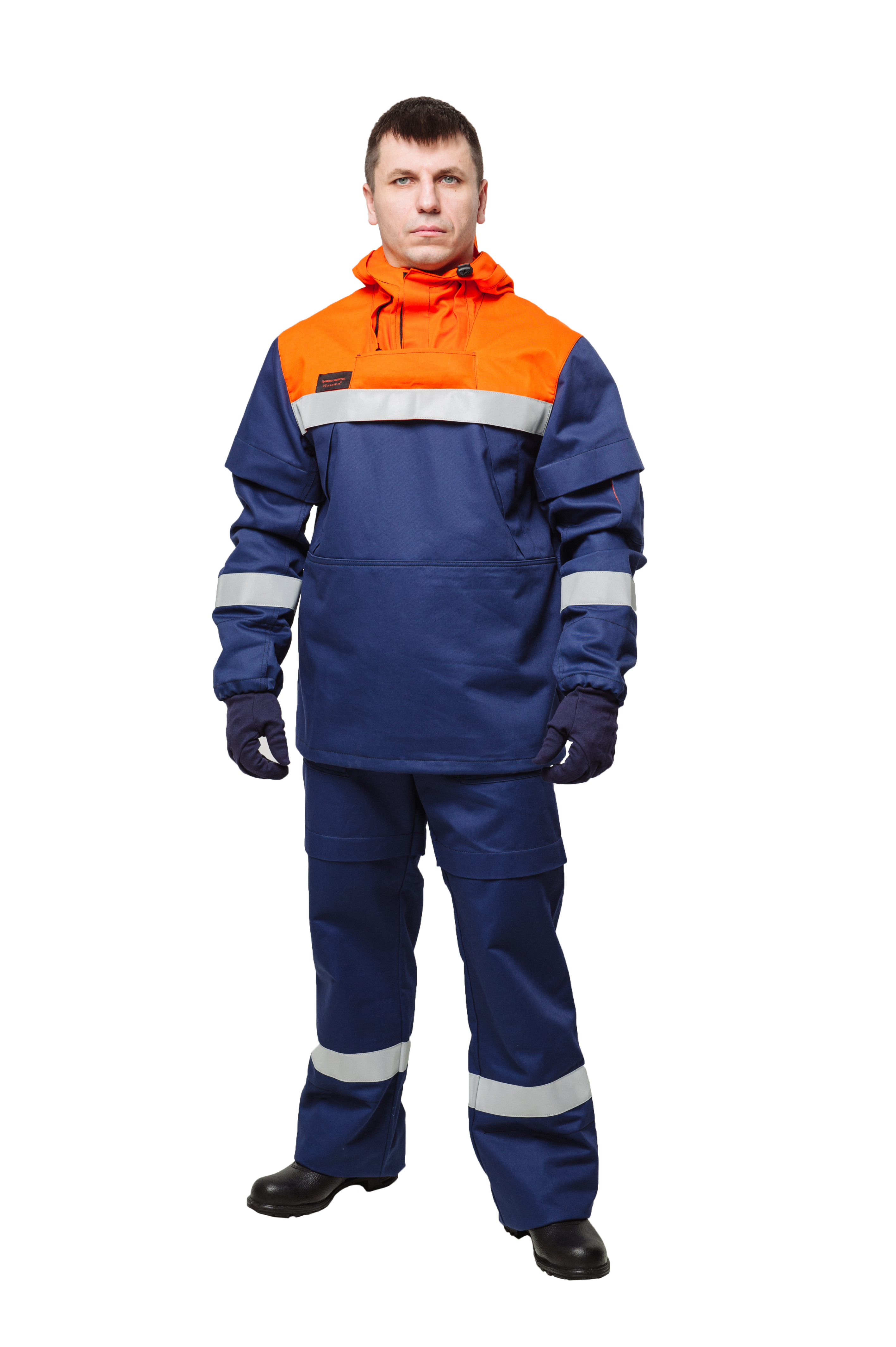 Рекомендуется для защиты от воздействия электрической дуги величиной 26,6 кал/см2. Костюм состоит из куртки и брюк. Куртка прямого силуэта, с защитными накладками на переде, с втачными рукавами и капюшоном, с внутренней защитной юбкой и внутренними напульсниками рукавов, заканчивающимися трикотажными манжетами, со складками-«ловушками». Брюки прямого силуэта с цельнокроеным поясом, без застежки, со складками-«ловушками», с внутренними защитными юбками. Ткань: огнезащитная ткань Banwear, 88% хлопок / 12% нейлон, запатентованная огнестойкая технология.