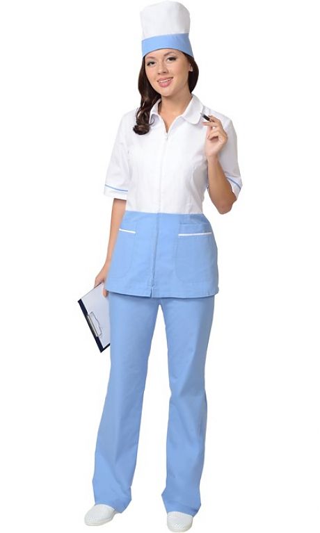 Костюм СИРИУС-СТЕФАНИ женский: куртка, брюки, колпак белый с голубым (СТ)