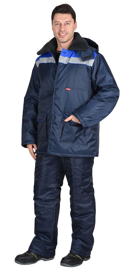 Костюм СИРИУС-СТРОЙГРАД зимний: куртка длинная., брюки темно синий с васильковым и СОП
