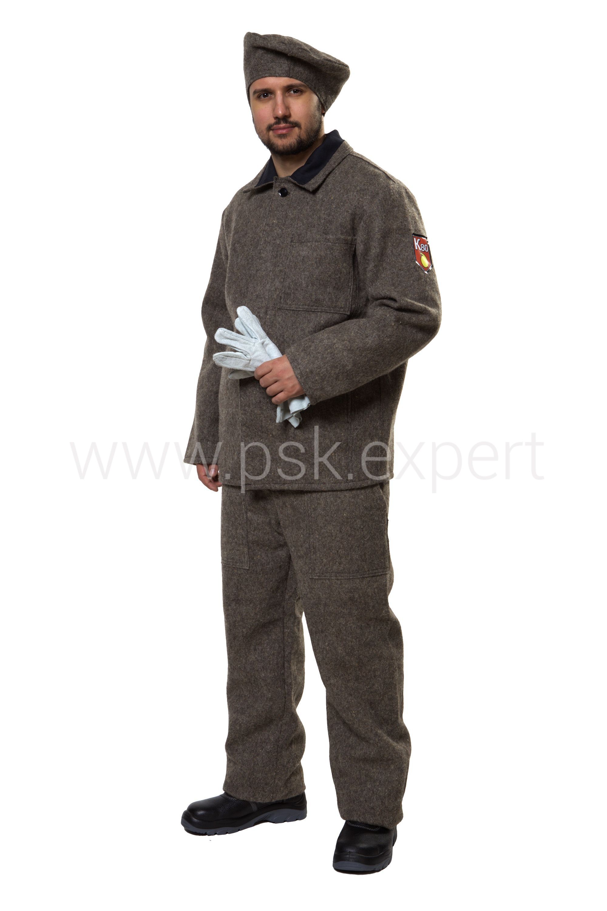 Костюм – куртка, брюки и берет. Костюм предназначен для защиты от кислот. Куртка с центральной супатной застежкой на пуговицы, двумя боковыми карманами в рельефных швах и накладным нагрудным карманом. Брюки свободного прямого покроя с застежкой на пуговицы и с боковыми накладными карманами. Берет регулируется по объему головы.