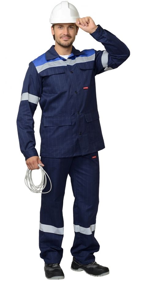Костюм рекомендован для нефтегазодобывающей промышленности. Куртка с центральной застежкой на пуговицы, отложным воротником, верхними и нижними накладными карманами с клапанами на липучке. Рукава с манжетами на пуговицах. Полукомбинезон с застежкой гульфика на пуговицы, нагрудным, боковыми задним карманами. Для определения сигнальной видимости предусмотрена СОП-50 мм.