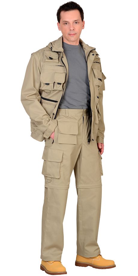 Костюм СИРИУС-Тигр Песочный: куртка, брюки, жилет, шорты, 20 карманов!