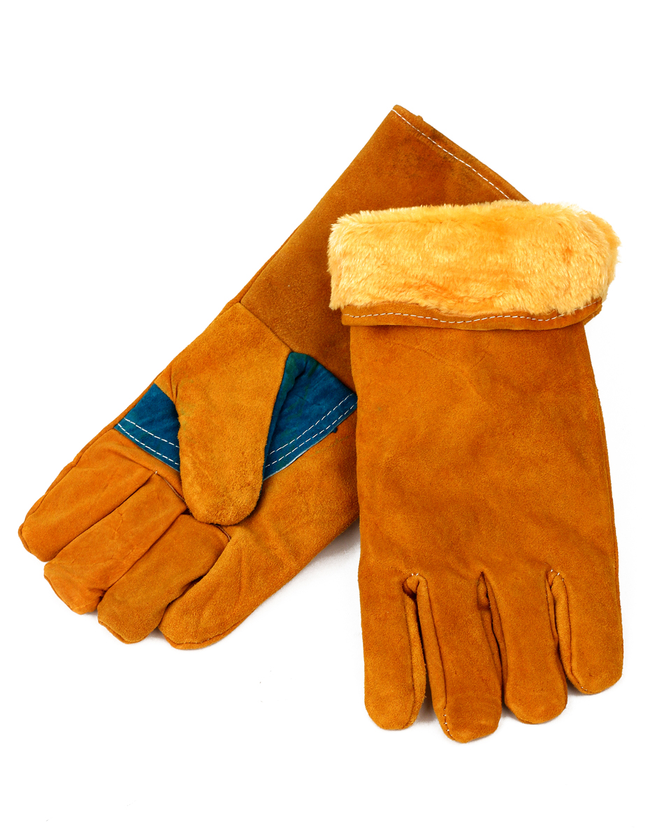 Особопрочные краги, пятипалые, с подкладкой из комфортного меха желтого (золотого) цвета, длина 350 мм. Спилок КРС однородный, сорт АВ, 1,5+/- 0,2 мм, шлифованный, желтого (золотого) цвета. Швы — нить Кевлар, усилены вставками из кожи, на ладонной части и большом пальце дополнительный слой из спилка. Краги обеспечивают высокую механическую защиту, защиту от повышенных температур — открытого пламени, искр и брызг расплавленного металла. Наличие утеплителя позволяет комфортно использовать краги в зимнее время.