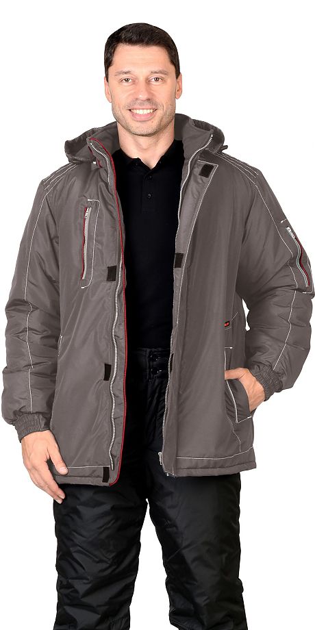 Костюм зимний РЕСПЕКТ куртка + п/к (серый с красно-черным)