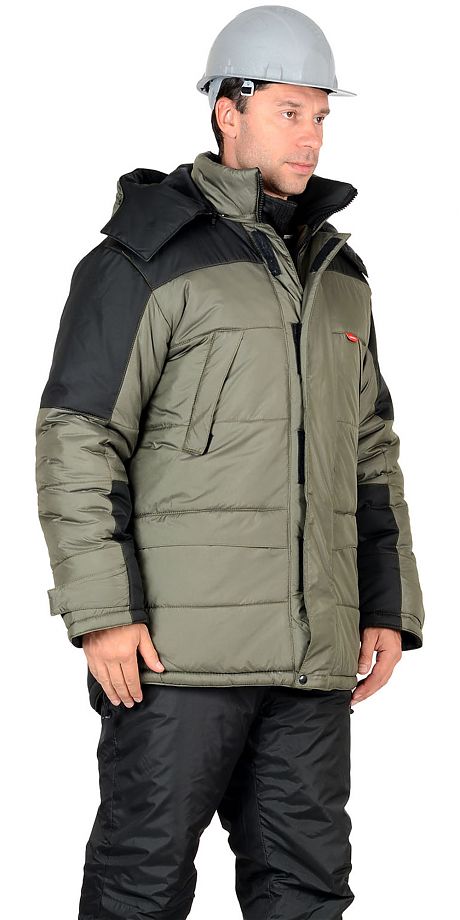 Тк. "Dewspo", 100% п/э. Утеплитель: файбертек 300 г/кв.м. Подкладка: 100% п/э. Застёжка на "молнию", пристёгив. капюшон, карманы под планками. ГОСТ 25295-2003.
