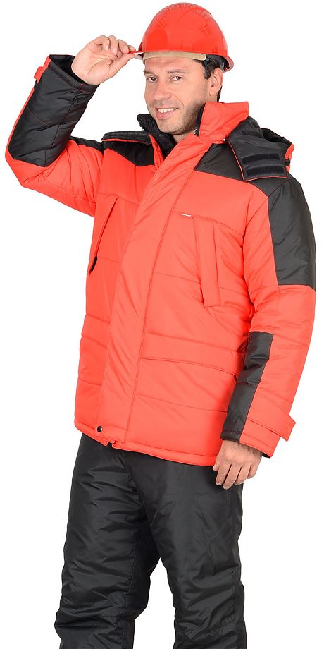 Тк. "Dewspo", 100% п/э. Утеплитель: файбертек 300 г/кв.м. Подкладка: 100% п/э. Застёжка на "молнию", пристёгив. капюшон, карманы под планками. ГОСТ 12.4.236-2007.