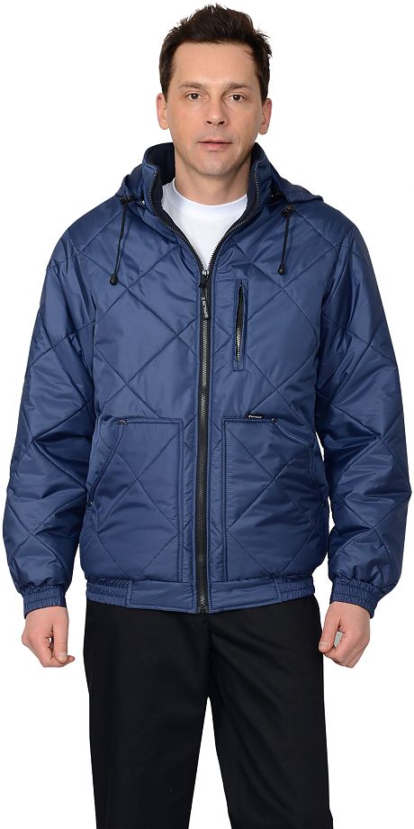 Куртка СИРИУС-ПРАГА-Люкс мужская, с капюшоном, темно-синяя