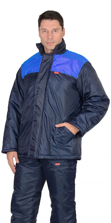 Куртка длинная, прямого силуэта; с центральной застёжкой на тёсьму-«молнию» и ветрозащитным клапаном с 4 потайными лентами «контакт»; воротник - «стойка».