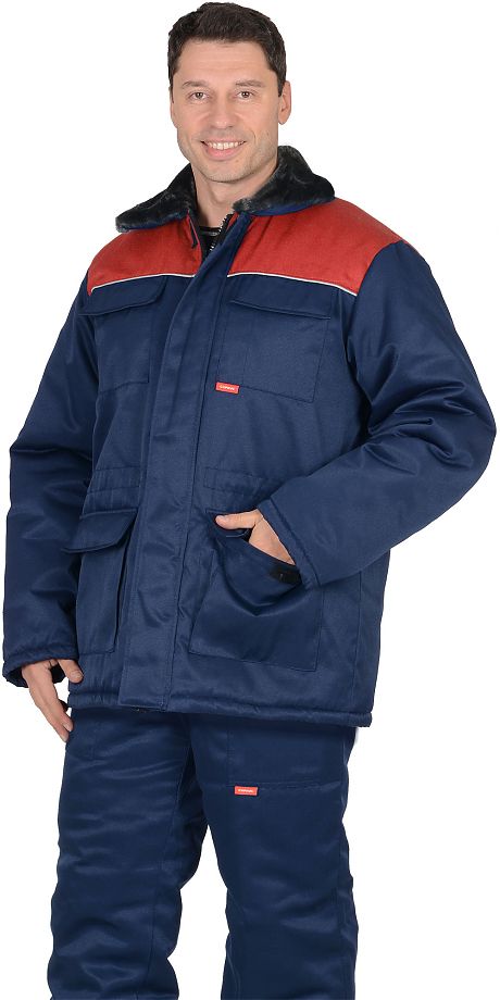 Куртка удлинённая прямого силуэта, с центральной бортовой застежкой на 2-х замковую тесьму "молния", с ветрозащитной планкой, застегивающиеся на потайную липучку, отложным воротником с мехом, с кулисой по линии талии, верхними накладными и нижними полуобъемными карманами с клапанами застёгивающиеся на потайную "липучку", с втачными рукавами, с внутренним карманом для документов застегивающимся на "липучку". В куртке предусмотрен СВ кант для обозначения сигнальной видимости.