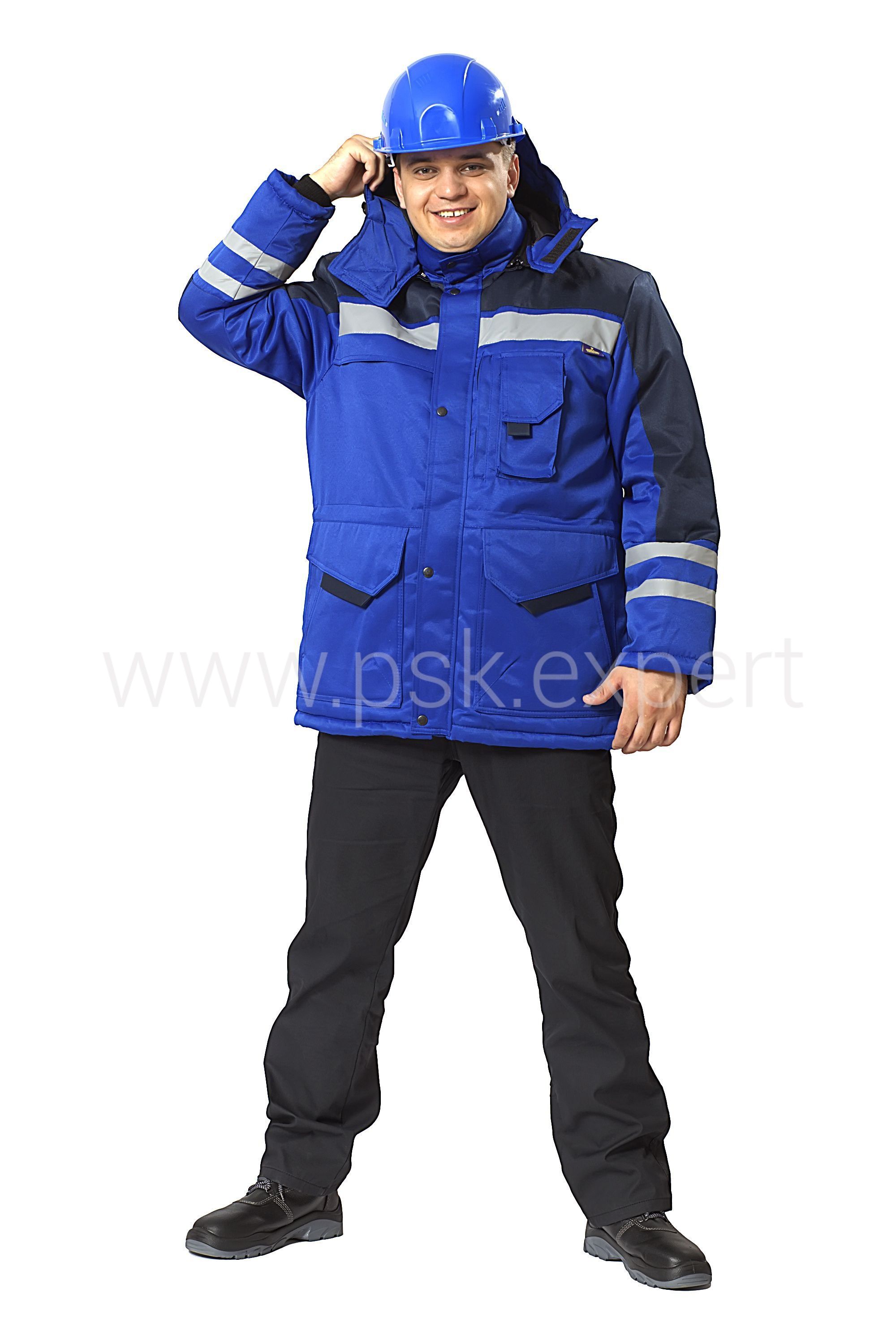 Куртка с центральной застёжкой на молнию и кнопки, с пристегивающимся капюшоном, с трикотажными напульсниками по низу рукава. Кокетка полочек, спинки, боковые части капюшона и средние части рукавов выполнены из отделочной ткани контрастного цвета. Внутренний воротник и карманы для дополнительного комфорта утеплены флисом. На куртке объемные накладные карманы, удобный карман с клапаном на груди для средств связи. Куртка с лентой СОП на груди, спине, по низу рукава.