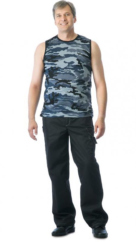 • Трикотажное полотно: 100% х/б. Камуфляжная расцветка "Город". Горловина и проймы окантованы. ГОСТ 20462-87.