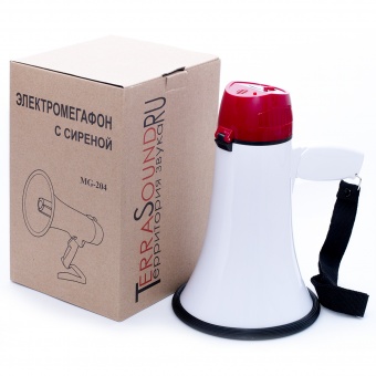 Небольшой ручной мегафон. Компактный ручной мегафон TerraSound MG-204 предназначен для усиления голоса, а так же для подачи сигнала «сирена».