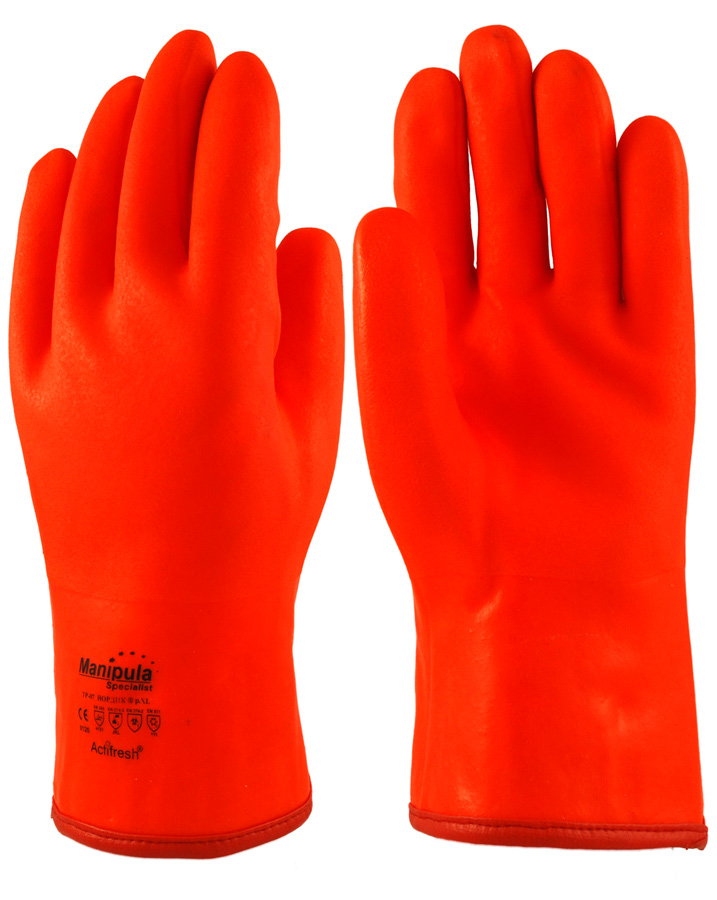 Утеплённые герметичные перчатки со сплошным покрытием из поливинилхлорида, предназначенные для работы в условиях низких температур.