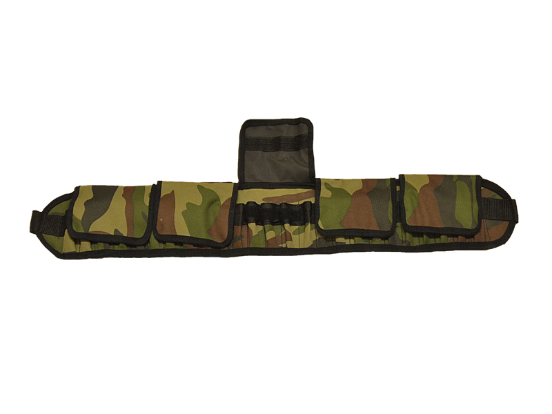 Закрытая система ячеек допускает переноску не только классически на поясе, но и использовать патронташ, как бандольеру, через плечо.