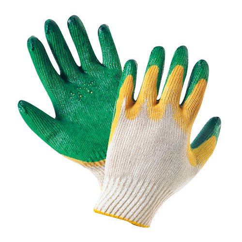Хлопчатобумажные перчатки с дополнительным добавлением полиэфирной нити, а так же с двойным полным обливом латекса, характеризуются в первую очередь высокой плотностью вязки в 10 петель на один дюйм.