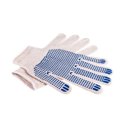 Перчатки хб ЛЮКС белые с ПВХ Точка, Волна 10ый класс