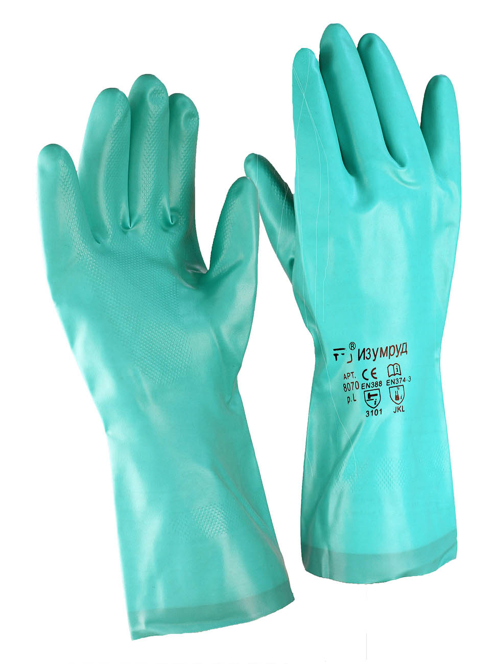 Перчатки химзащитные МБС, КЩС-50%, нитриловые Изумруд (60 пар в уп.)