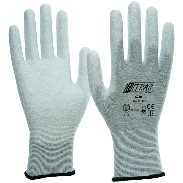 Перчатки антистатичные нейлоновые с карбоновой нитью, с полиуретановым покрытием (Nitras), арт.6230