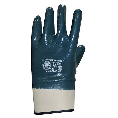 Перчатки нитриловые СИРИУС-НИТРИЛ КП (ЛЮКС), в уп.120пар с твёрдыми манжетами обливные, р. 9,10,11
