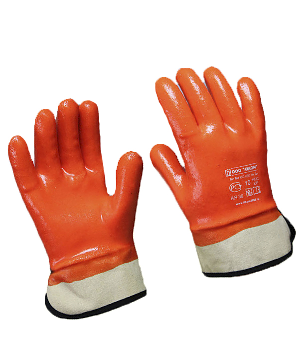 Морозоустойчивые (до-40-45С) маслобензостойкие перчатки с ПВХ покрытием утепленные подкладкой из х/б материала.