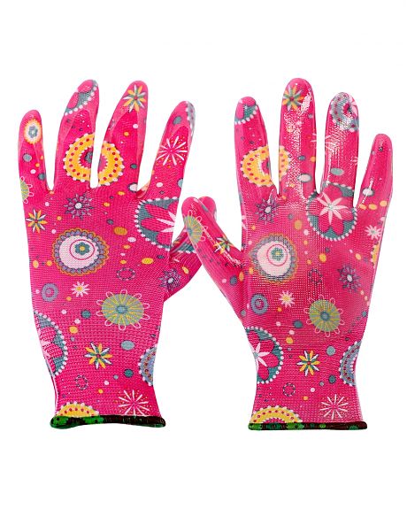 Перчатки САДОВЫЕ розовые (100%нейлон 13-го кл. вязки, с принтом, покрытие-прозр. нитрил), в уп120пар