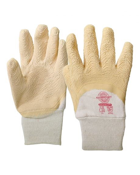 Материал: джерси-100% хлопок, покрытие ладони и пальцев: тяжелое рельефное из 100% латекса. Манжет: трикотажный. Уникальное рельефное покрытие обеспечивает прочный захват различных поверхностей. Надежная защита от проколов и порезов. Водостойкость. Частичное покрытие на тыльной стороне позволяет руке дышать.